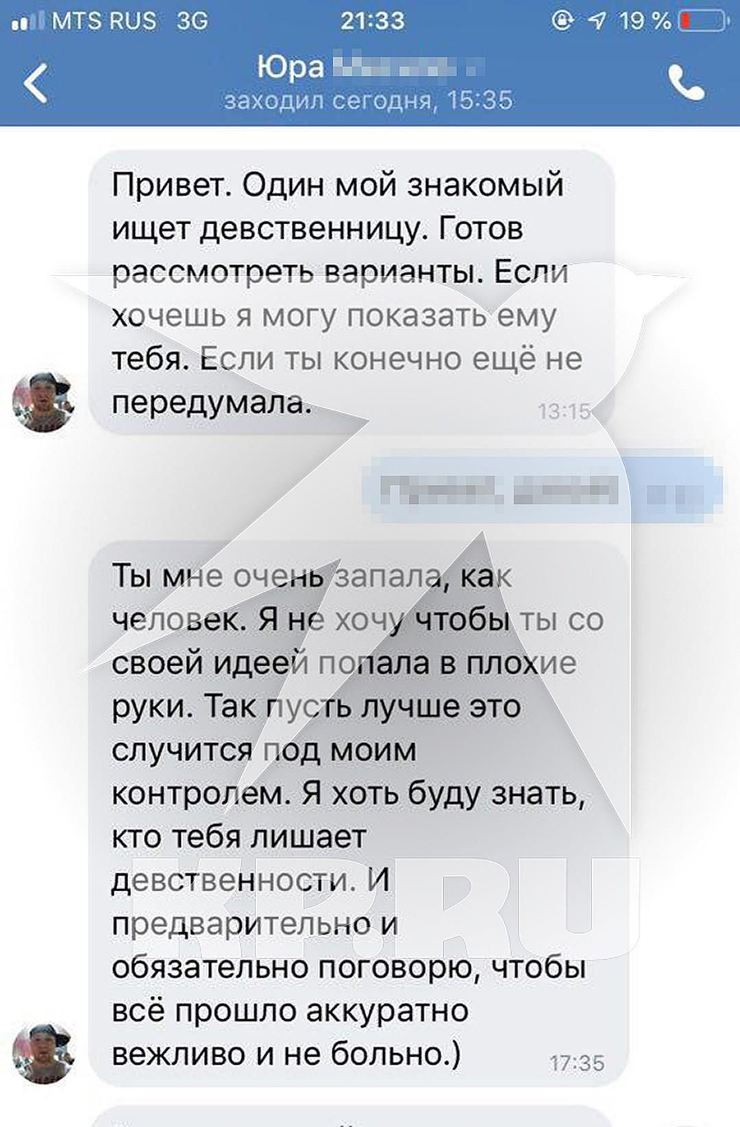 Так, тем, кто знакомился с жертвой, был некий Юрий. Он нашел в социальных сетях 16-летнюю девочку Вику и написал ей непримечательное сообщение с предложением о знакомстве. Поначалу он не проявлял никаких негативных намерений, был вежлив и учтив. Потом начал заметно склоняют девушку к разговорам о сексе. Когда подвернулся «удобный» момент, он предложил ей продаться за 5 тысяч долларов.