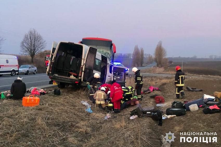 В результате аварии водитель и шестеро пассажиров микроавтобуса погибли, еще 9 человек пострадали, их направили в больницу города Волочиск.