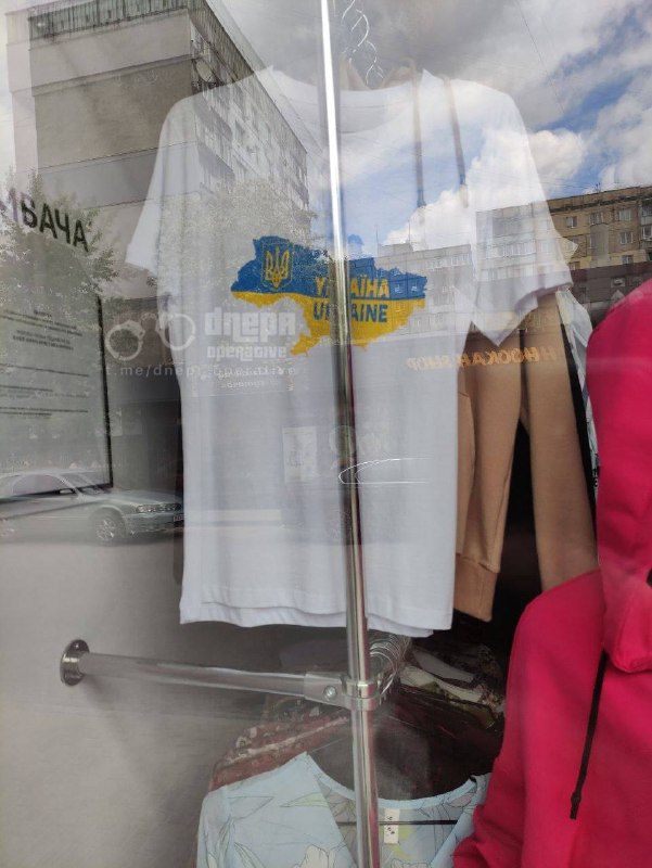 В Днепре тоже продают одежду для патриотов. Так, в одном из магазинов на Образцова продаются футболки с принтом в виде карты Украины, однако непонятно куда пропал украинский Крым?