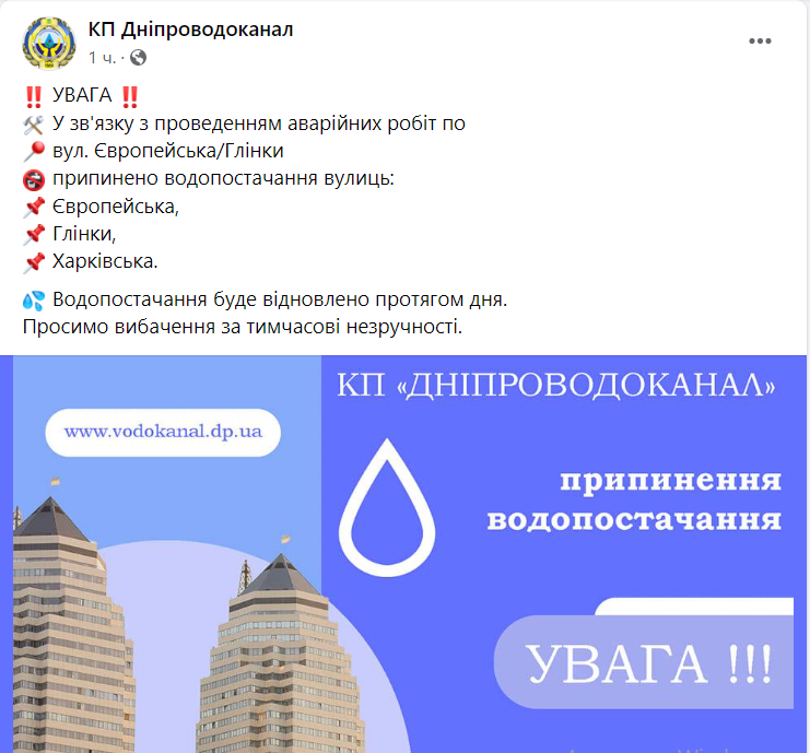 Водоснабжение обещают возобновить в течение дня. В коммунальном предприятии просят прощение за временные неудобства.