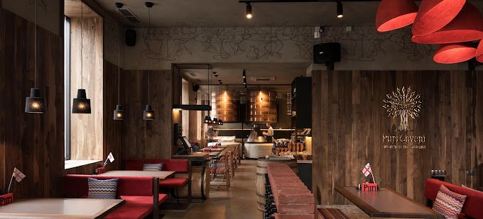 Также в Днепре можно попробовать и грузинскую кухню. В городе работает несколько ресторанов такой «направленности». В заведении Puri Chveni можно съесть традиционные супы – шурпу, харчо, бозбаш или чихиртму, горячие блюда – долму, лобио, хинкали, хачапури. А на десерт среди прочего можно попробовать Тбилисский торт с кизиловым мороженым. Интерьер заведения оформлен в темных, теплых коричневых тонах, дополнен черными и красными светильниками, а также мебелью с красной оббивкой. Находится на улице Сечевых Стрельцов, 4.