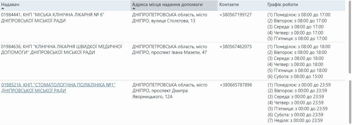 В Минздраве отмечают, что сейчас услуги предоставляются в 45 медучреждениях Украины, которые законтрактованы Национальной службой здоровья Украины. В Днепре это: