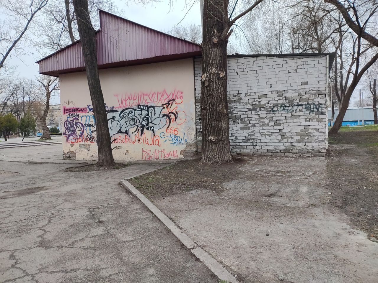 Сейчас ресторан несколько лет стоит без окон, без дверей и все в «рисунках».
