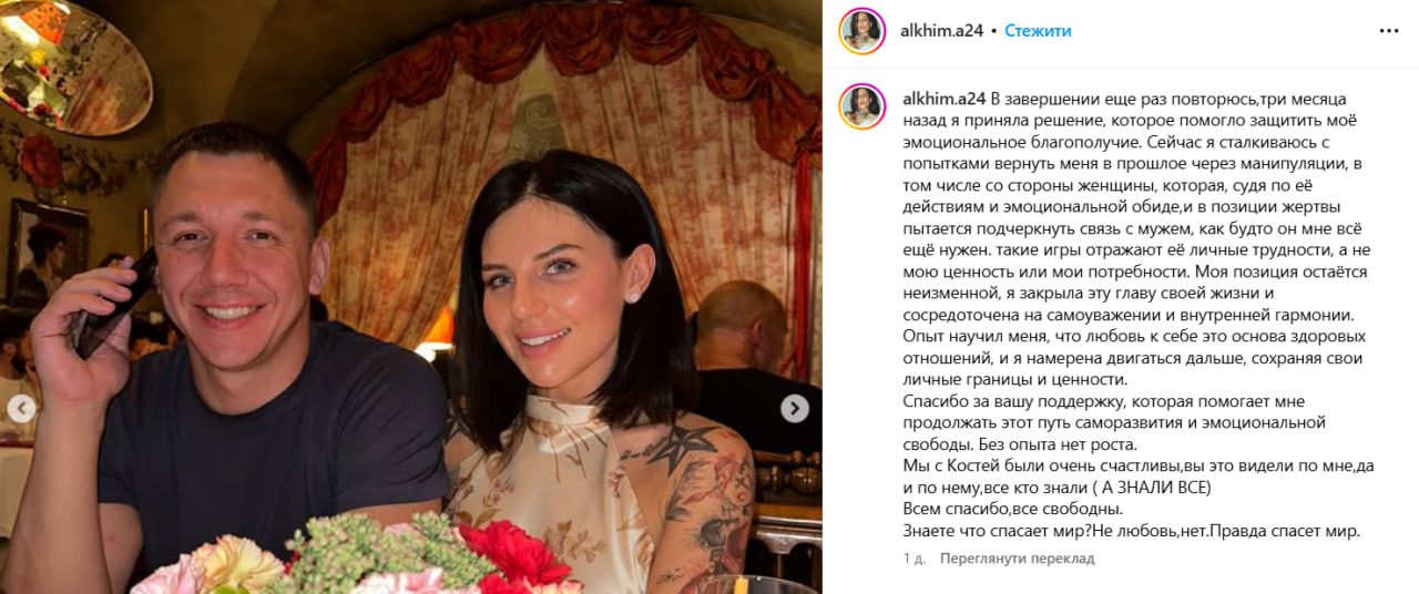 В конце марта стало известно, с кем Анна Алхим была в отношениях. Она рассказала об этом сама на своей странице в Instagram и снова оказалась в центре внимания. Выяснилось, что девушка была любовницей Константина Валеулина – украинского бизнесмена.