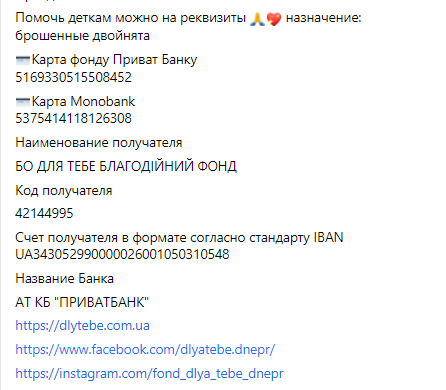 Об этом благотворительный фонд "Для тебя" рассказал на своей страничке в Facebook.