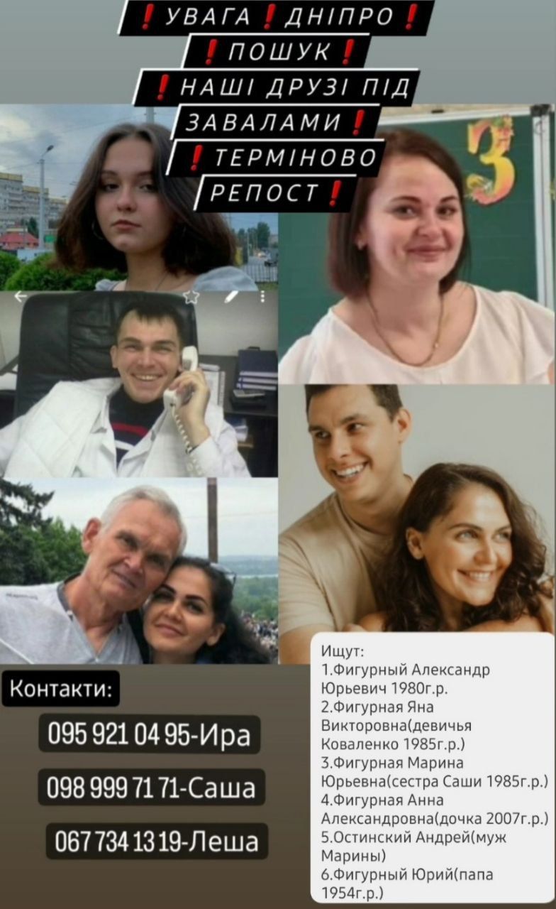 Житель Днепра ищет своих знакомых, которые были в доме на момент удара.