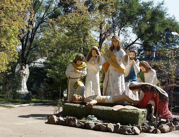 После освобождения Днепра братская могила превратилась в парк, со временем он стал свалкой и лишь спустя время его снова расчистили и создали тут парк. Обустройством зеленой зоны занималась ромская община. Они же установили в парке необычные скульптуры. Тут есть персонажи мультфильмов, герои библейских сюжетов, солдаты, есть даже скульптура цыганской семьи. Периодически скульптуры обновляют и наносят свежую краску.