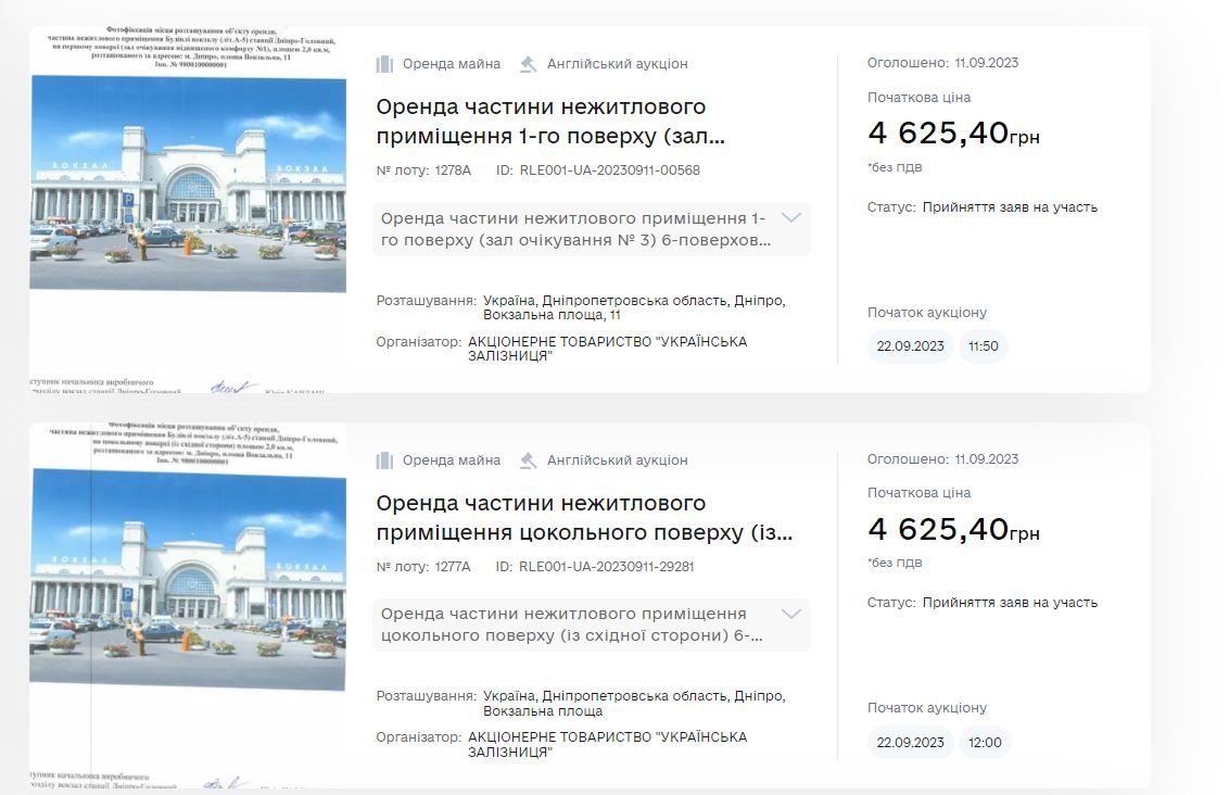 На сайте Prozorro.Продажи уже 9 лотов на аренду помещений вокзалов в Днепре, Кривом Роге, Каменском и Павлограде.