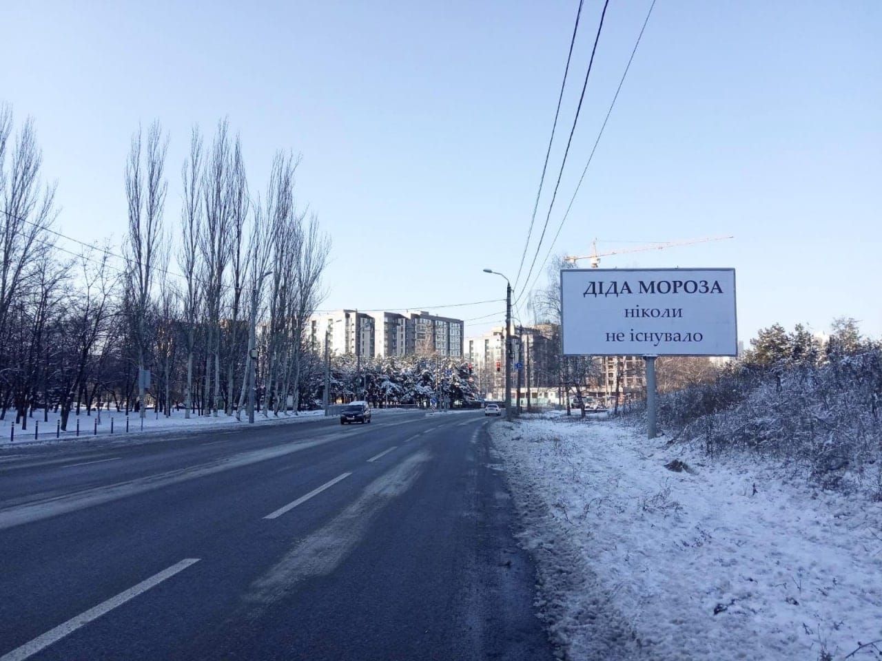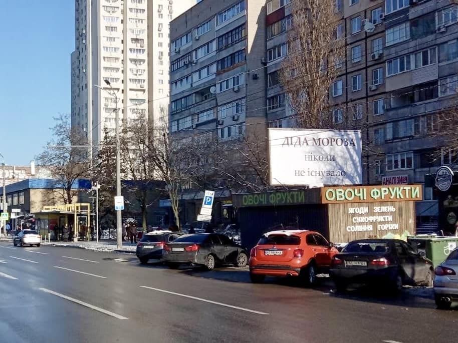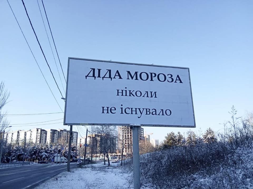 Тем временем в Днепре объявили войну Деду Морозу. Вчера на улицах города заметили билборд с надписью: "Дед Мороза никогда не существовало". Как оказалось, по городу развешаны десятки таких плакатов. Особенно много их на жилом массиве Победа.