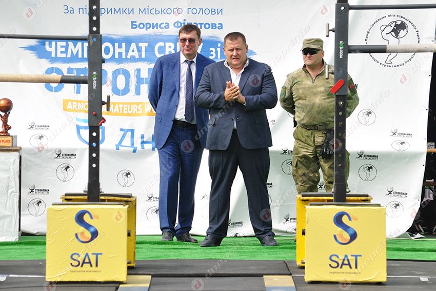 На Фестивальном причале соревновались стронгмены со всей Европы. Среди судей - Василий Вирастюк, а открывать мероприятие мэр Днепра Борис Филатов прибыл в компании генпрокуроа Юрия Луценко и нардепа Дмитрия Яроша.