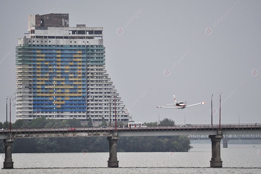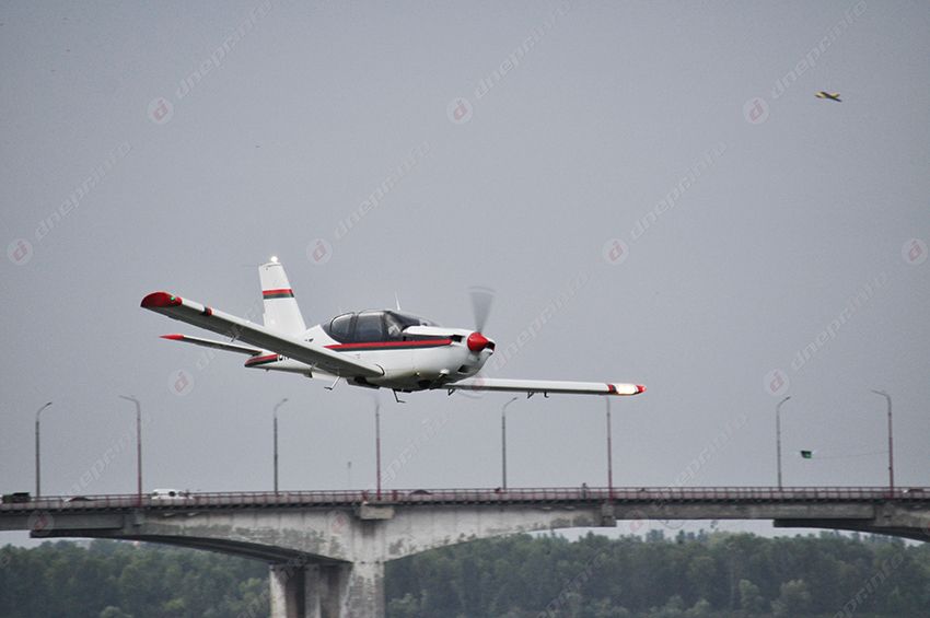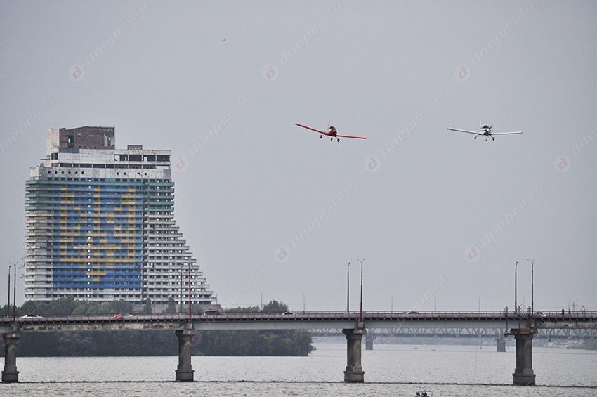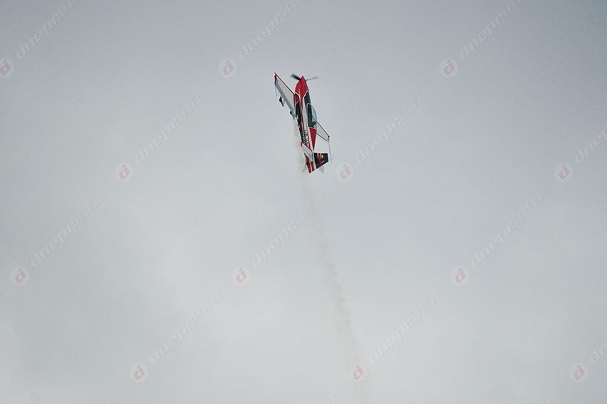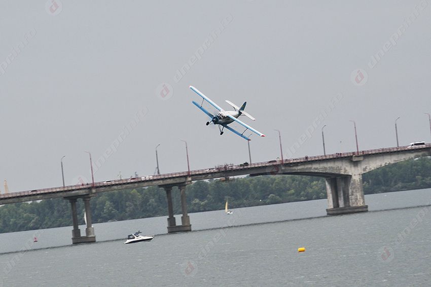 После обеда у Фестивального причала прошли авиационное и водное шоу. Шоу на воде вышло слабеньким, а вот авиашоу удалось благодаря прыжкам парашютистов на воду и мастерству пилотов-ассов, которые демонстрировали в небе над Днепром фигуры высшего пилотажа.