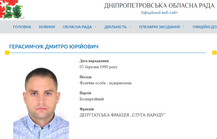 Дмитрий Герасимчук из Орловщины на последних местных выборах баллотировался в депутаты Днепропетровского областного совета от партии «Слуга народа». Дмитрию повезло, и он таки стал депутатом.