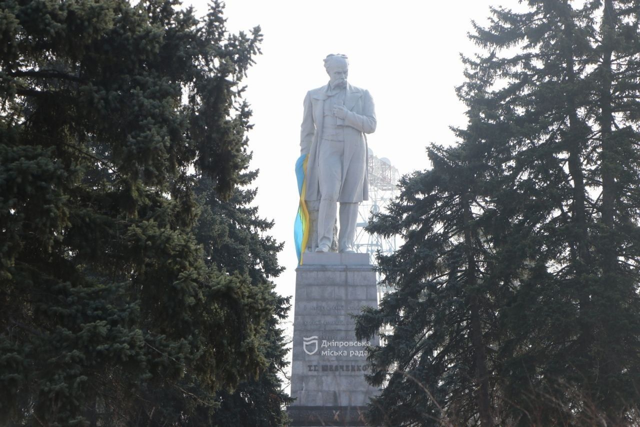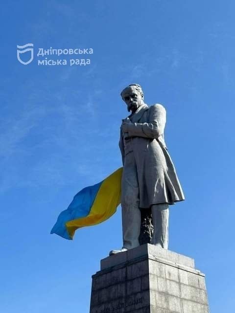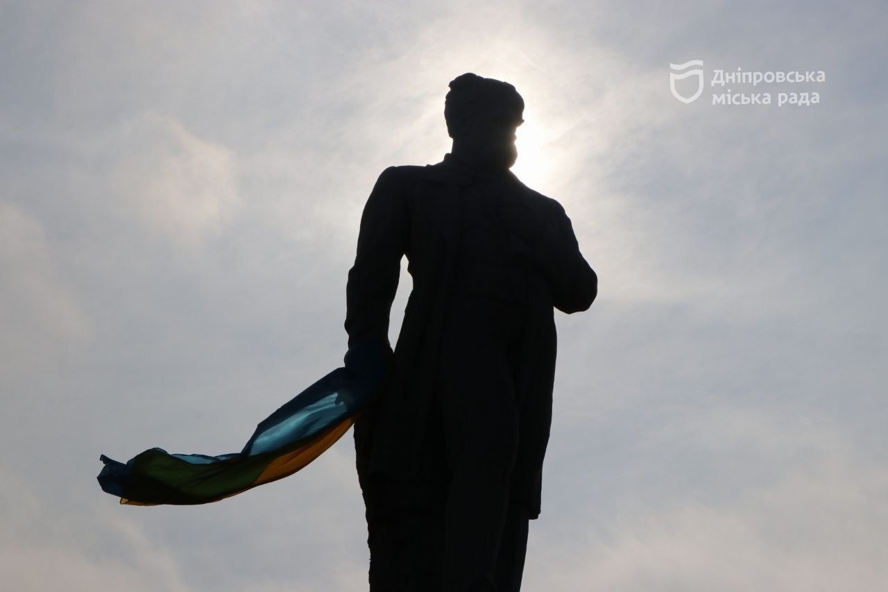 Держит в руке огромный флаг: в Днепре украсили памятник Шевченко