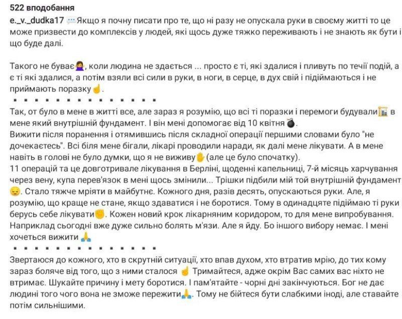 В своих соцсетях она поделилась своим опытом. Евгения говорит, что изначально была уверена, что сможет выжить. Девушка призналась, что 7 месяцев сложного лечения, питания только из-за вен и постоянных операций, что-то в ней изменили.