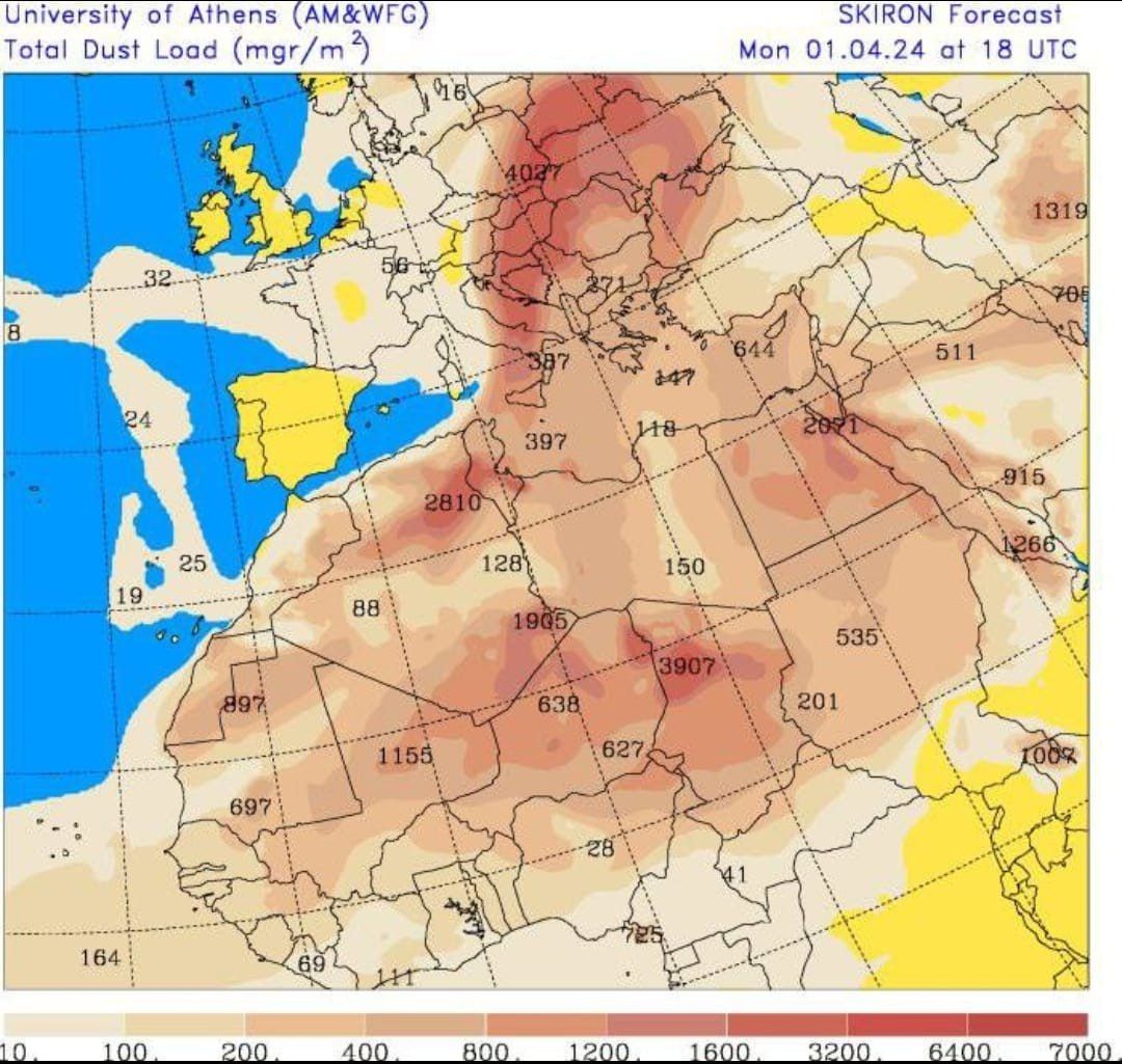 1 апреля пылевая масса зайдет в Украину из Румынии, поэтому заденет преимущественно южные области. Однако облако может дотянуться даже до центральных, северных и частично восточных регионов. На карте, смоделированной Университетом в Афинах, видно, что песчаная буря заденет и Днепр.