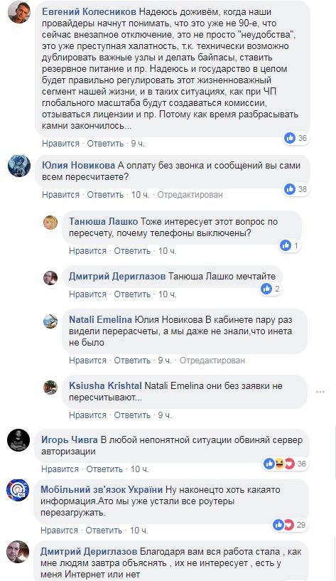 Многих жителей Днепра в комментариях к посту также интересует вопрос, будет ли им проведен перерасчет за время отсутствия интернета.