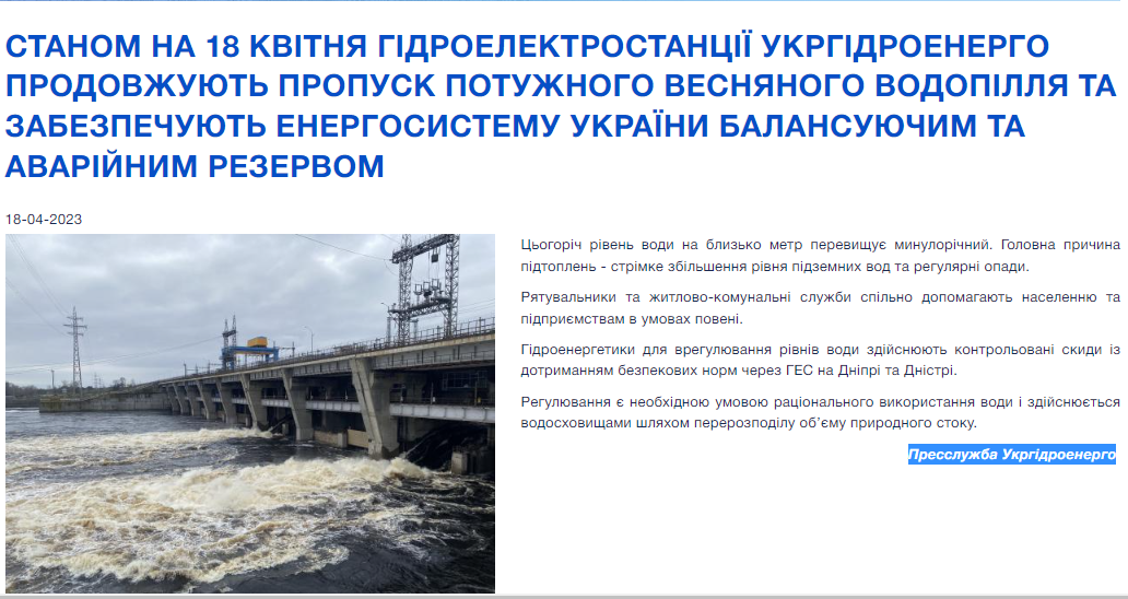 Гидроэнергетики для урегулирования уровней воды осуществляют контролируемые сбросы с соблюдением норм безопасности через ГЭС на Днепре и Днестре. Регулирование является необходимым условием рационального использования воды и осуществляется водохранилищами путем перераспределения объема природного стока, - говорится в сообщении "Укргидроэнерго".