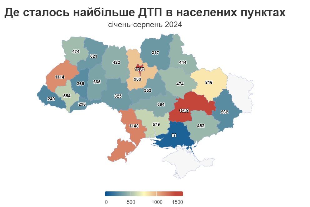 С начала 2024 года в Днепропетровской области произошло 1 350 аварий с пострадавшими. Таким образом, наша область вторая в антирейтинге регионов, где случается больше всего ДТП.