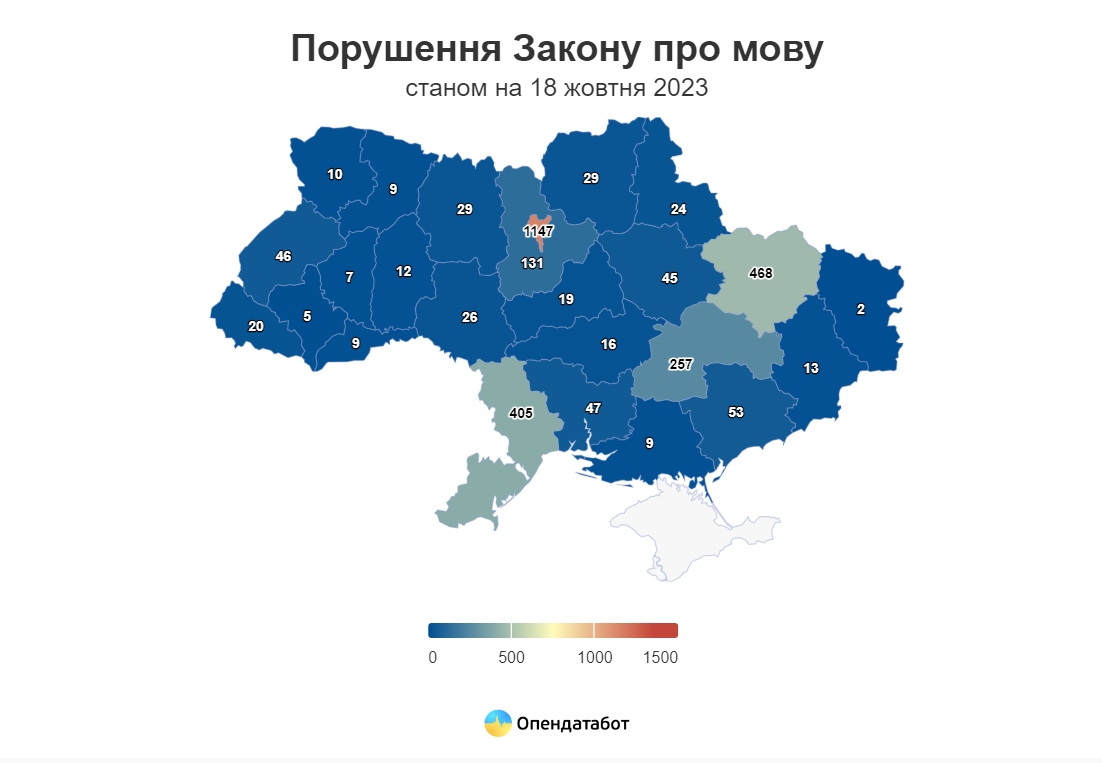 С января по октябрь 2023 года к Уполномоченному по защите государственного языка поступило 3015 обращений от граждан по поводу нарушений языкового закона. Отмечается, что это на 4% больше по сравнению с соответствующим периодом 2021 года: тогда было зафиксировано 2895 обращений.