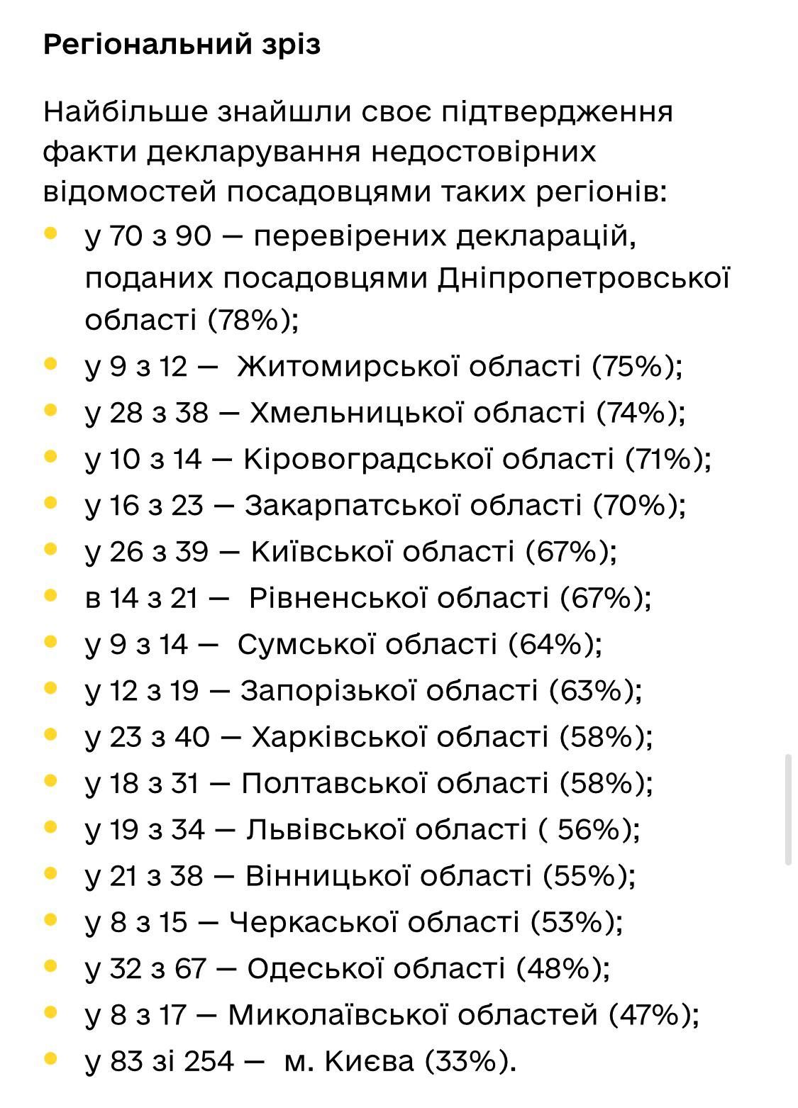 Из 90 деклараций не соответствовали действительности 70 – это почти 78%. Таким образом область оказалась лидером в антирейтинге по недостоверным декларациям.