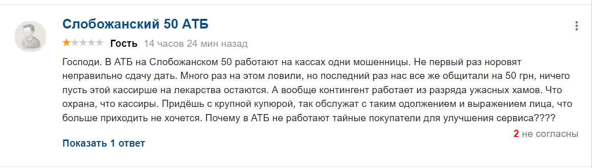 "Почему в "АТБ" не работают тайные покупатели для улучшения сервиса?" - интересуется днепрянка.