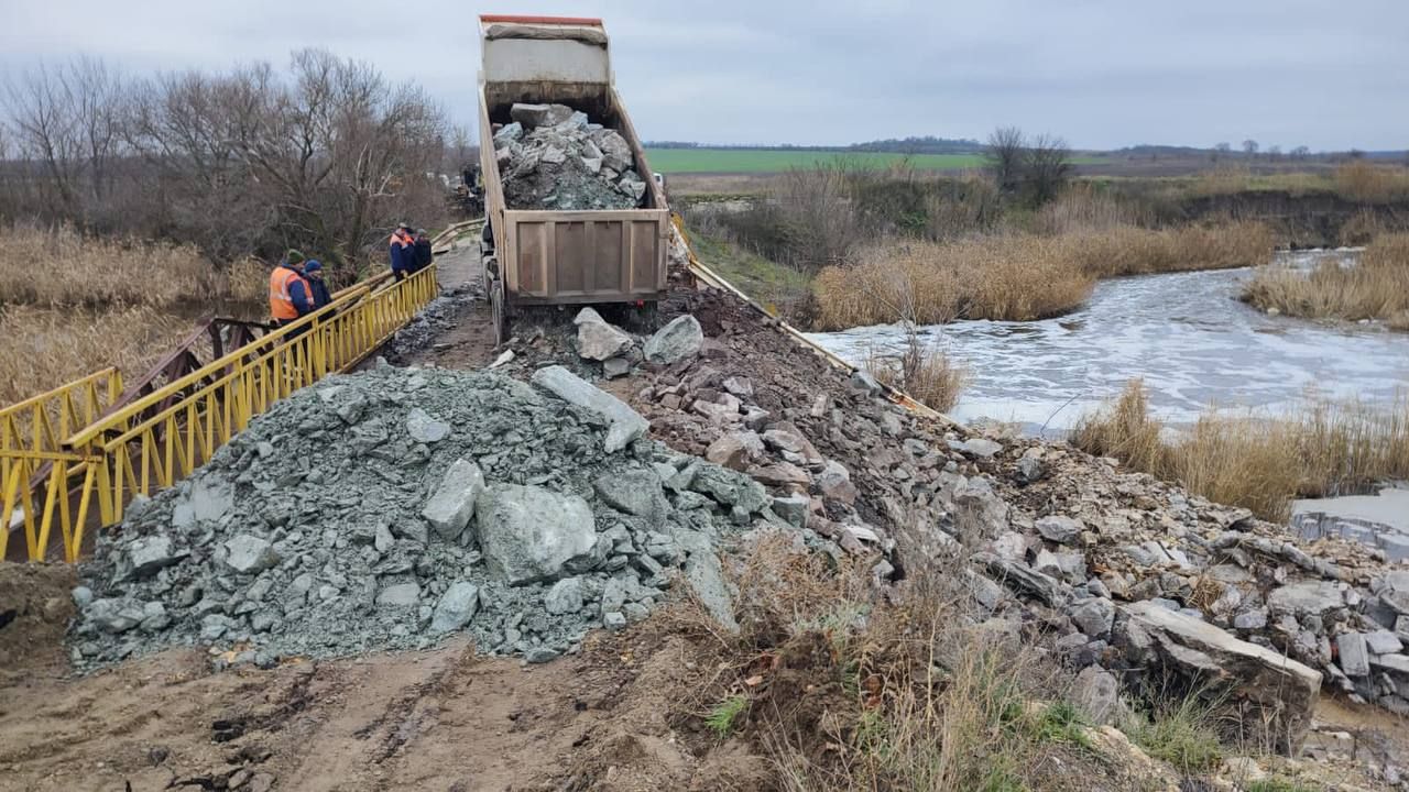 В селе Заградовка Херсонской области сегодня, 22 ноября, дорожники починили мост через реку Ингулец.