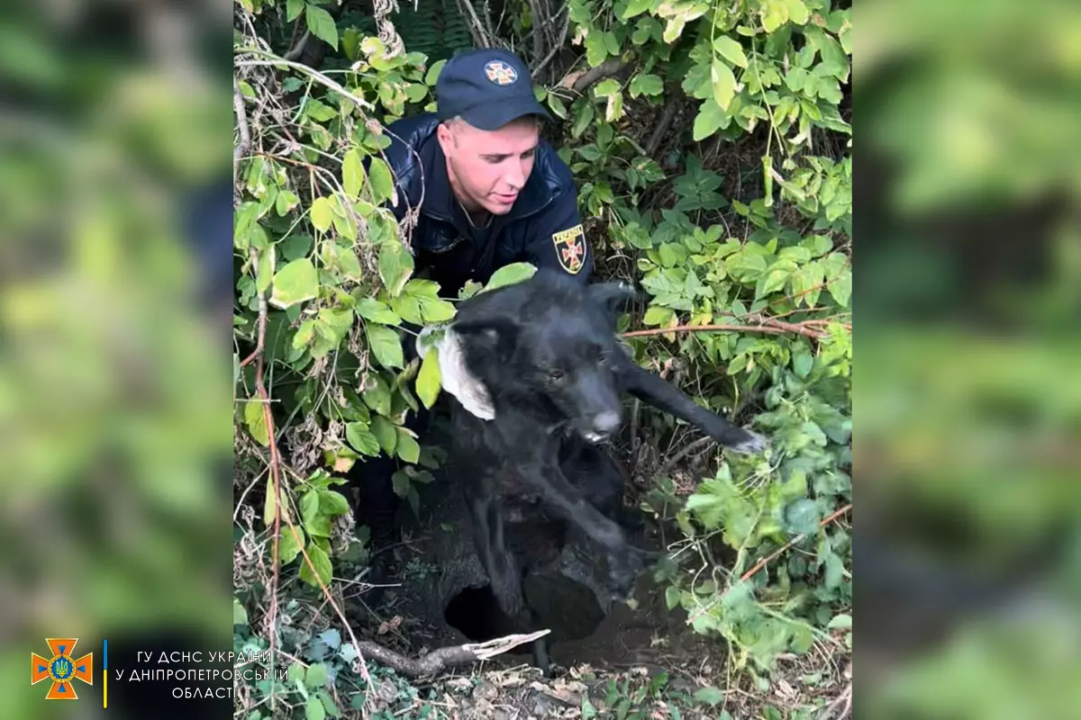Достали из 1,5-метровой ямы: в Днепре сотрудники ГСЧС спасли собаку