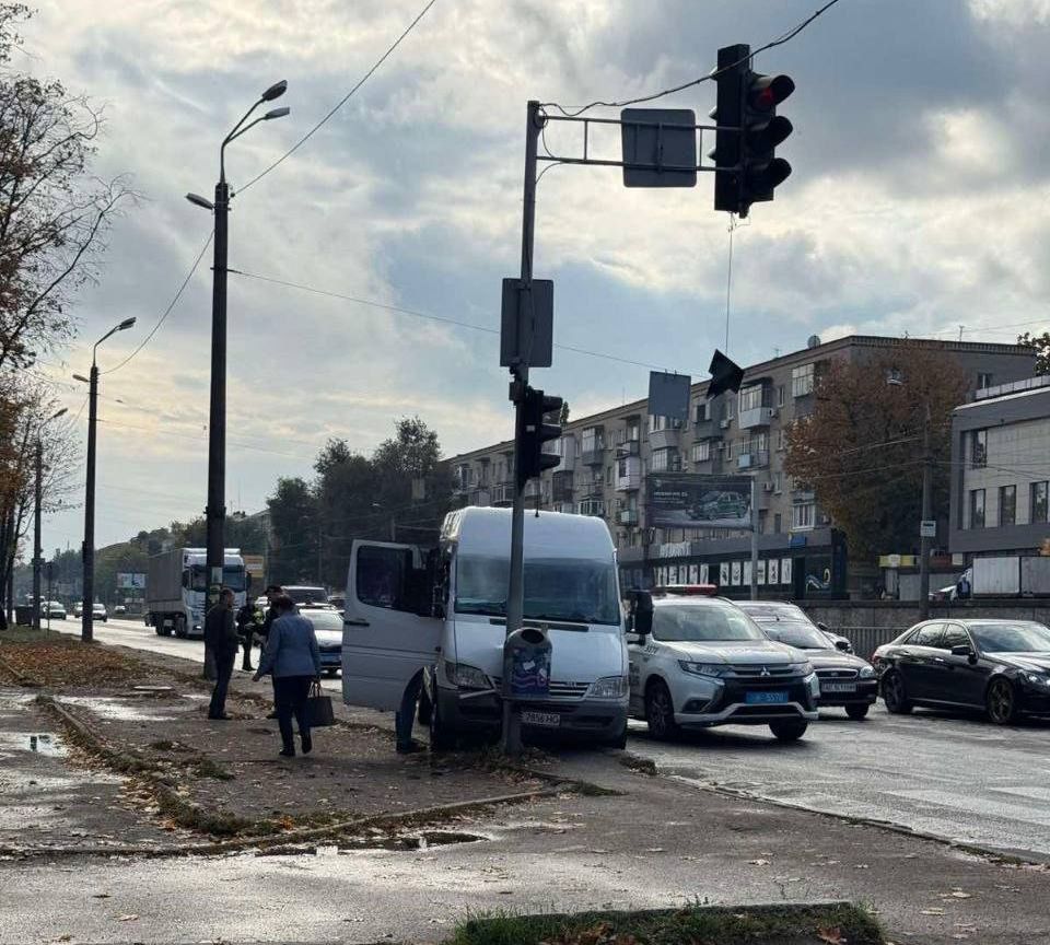 ДТП на проспекте Богдана Хмельницкого: маршрутка протаранила светофор