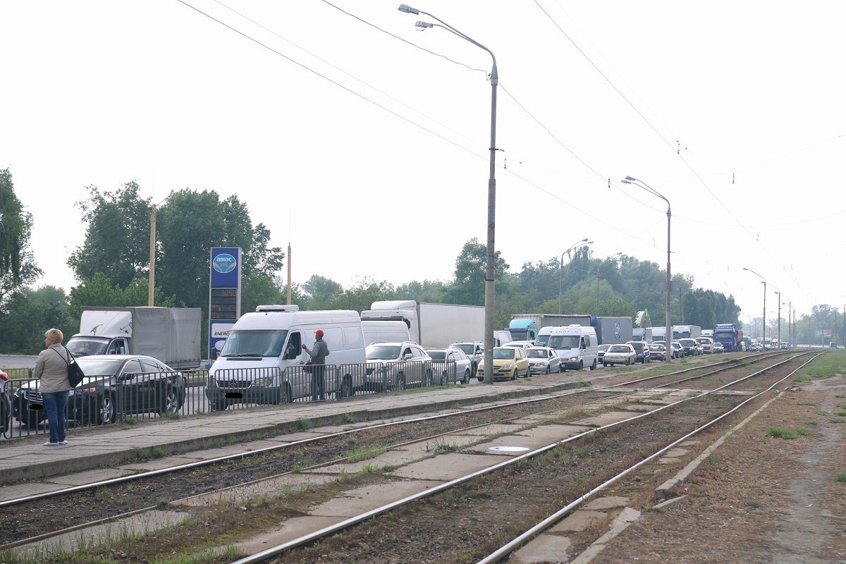 Множество автомобилей попросту «застряли» посреди Кайдакского моста.