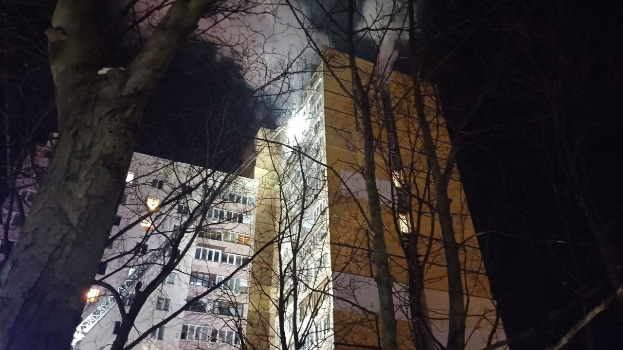 Огонь охватил квартиру на 15 этаже. В результате пожара часть балкона обрушилась. О пострадавших пока нет информации. Все детали происшествия выясняются.