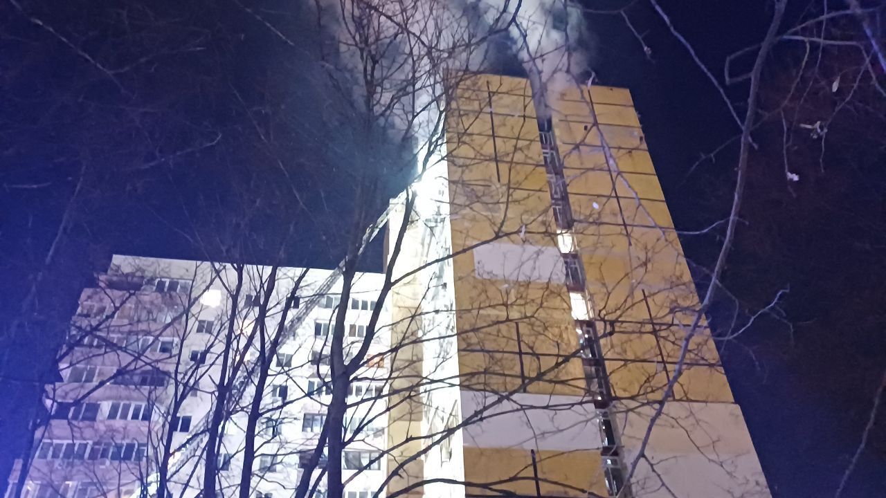 Дым виден за километр: на Победе пожар в 16-этажке