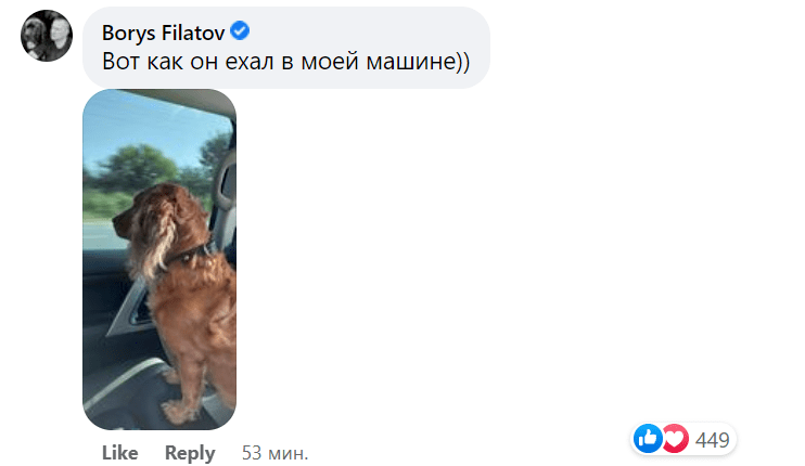 В комментариях Борис Филатов показал, как пес ехал в его авто.