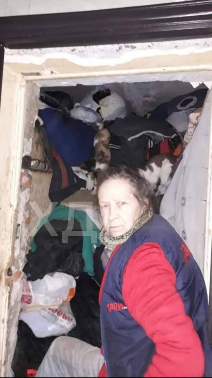 В комнате днепровской Плюшкиной настолько много мусора, что в неё невозможно войти. Но помимо хлама она также коллекционирует котов, которые, по сути, живут под потолком. Кормит она их перловой кашей, что придаёт им нездоровый вид. Но на котах всё не заканчивается, жилье женщины наполнено тараканами и мухами даже в феврале.