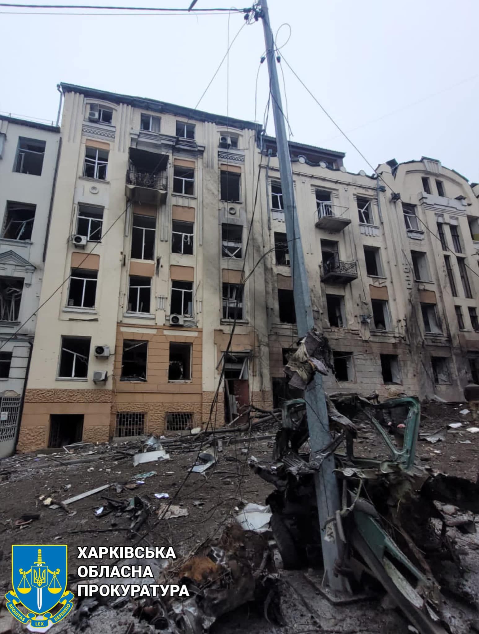 По информации Харьковской областной прокуратуры, одна из ракет попала в пятиэтажное здание высшего учебного заведения и нанесла серьезные разрушения. Пострадал охранник.