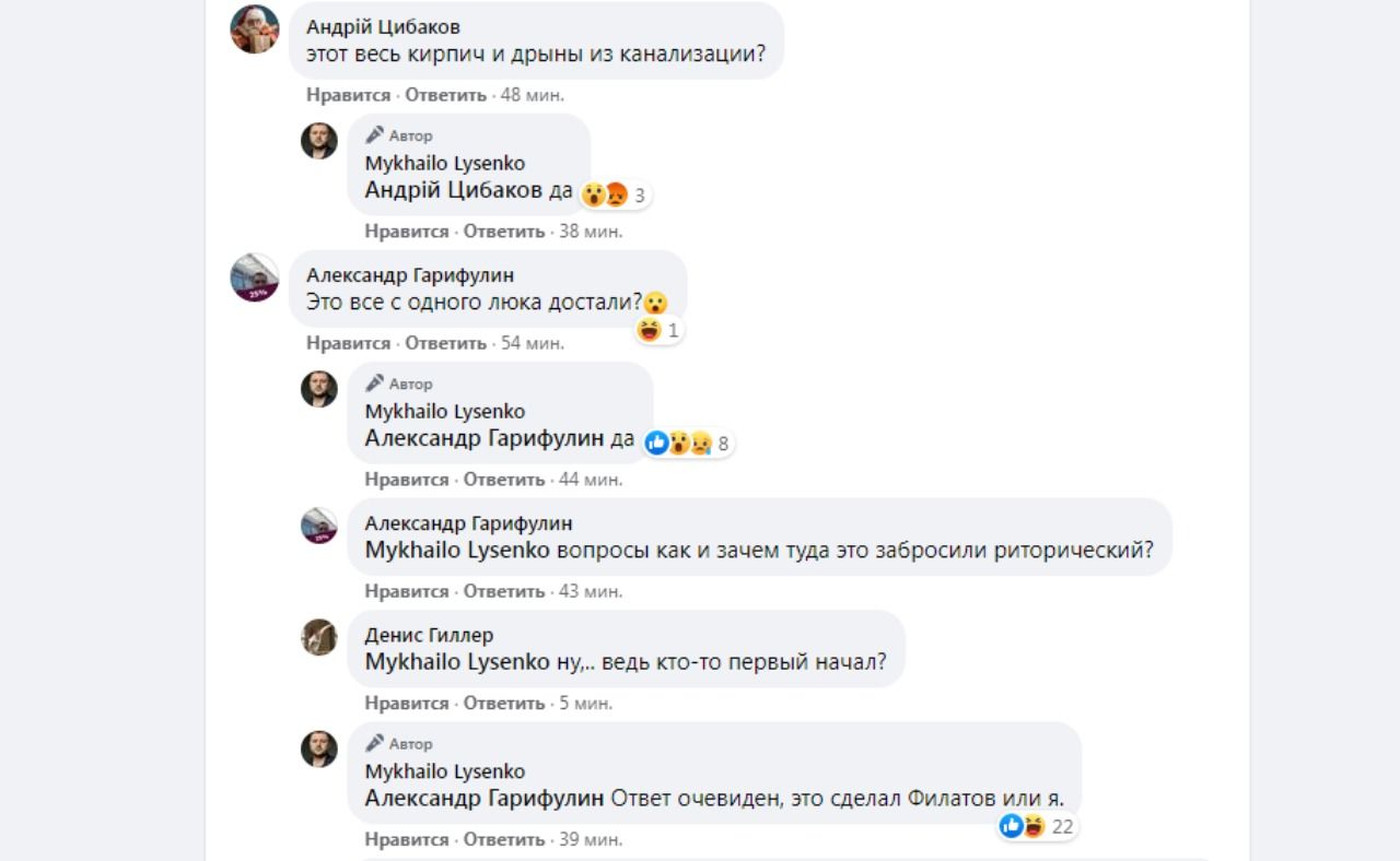 Днепряне в комментариях удивилась, мол, все это из канализации достали. А также начали спрашивать, кто же мог это все сделать, на что заместитель городского головы ответил: «Ответ очевиден, это сделал Филатов или я».