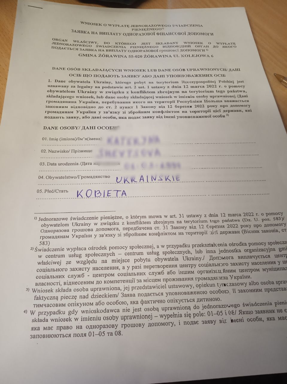 Абсолютно все украинцы, которые приезжают в Польшу, могут получить единоразовую помощь от государства - 300 злотых (чуть больше 2000 гривен). Для этого не нужно оформлять статус беженца. Сейчас украинцы могут оставаться в Польше без этого статуса 18 месяцев.