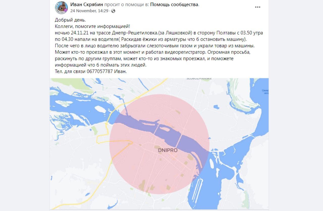 В Днепропетровской области произошло очень странное ЧП: на трассе Днепр-Решетиловка неизвестные ограбили водителя.