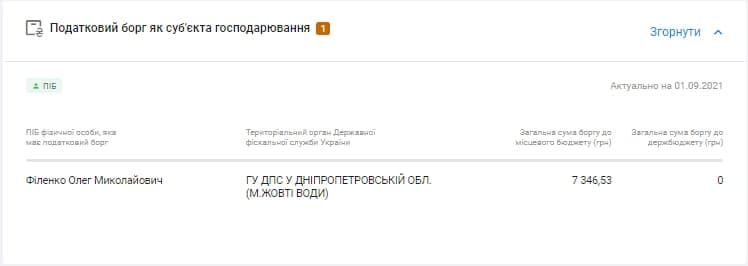 Как ФЛП Олег Филенко зарегистрировался в октябре 2020 года. Проживает предприниматель в Желтых Водах.