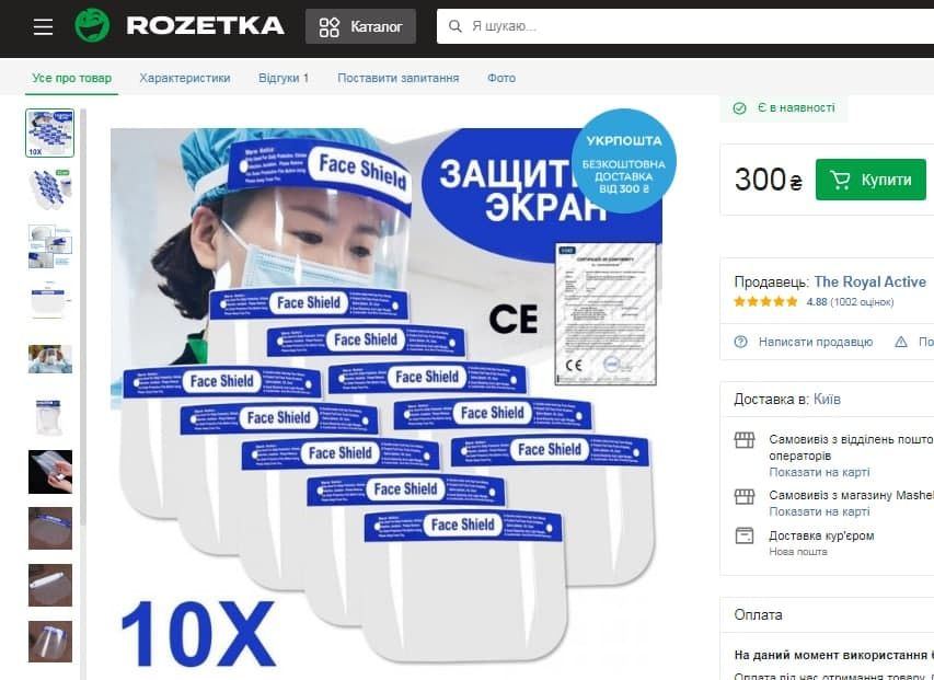 А на сайте Rozetka можно приобрести 10 масок-экранов за 300 гривен.