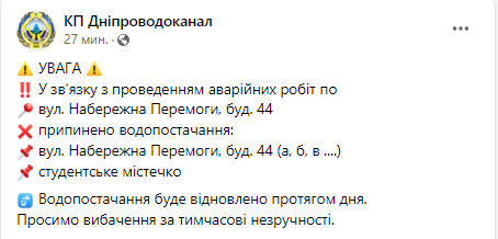 Сегодня, 20 октября, некоторые жители Днепра снова остались без воды.