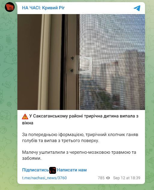 Напомним, в Синельниково случилась трагедия – там 3-летняя девочка выпала из окна второго этажа. Малыш оперся о москитную сетку, которая не выдержала вес ребенка и сломалась.