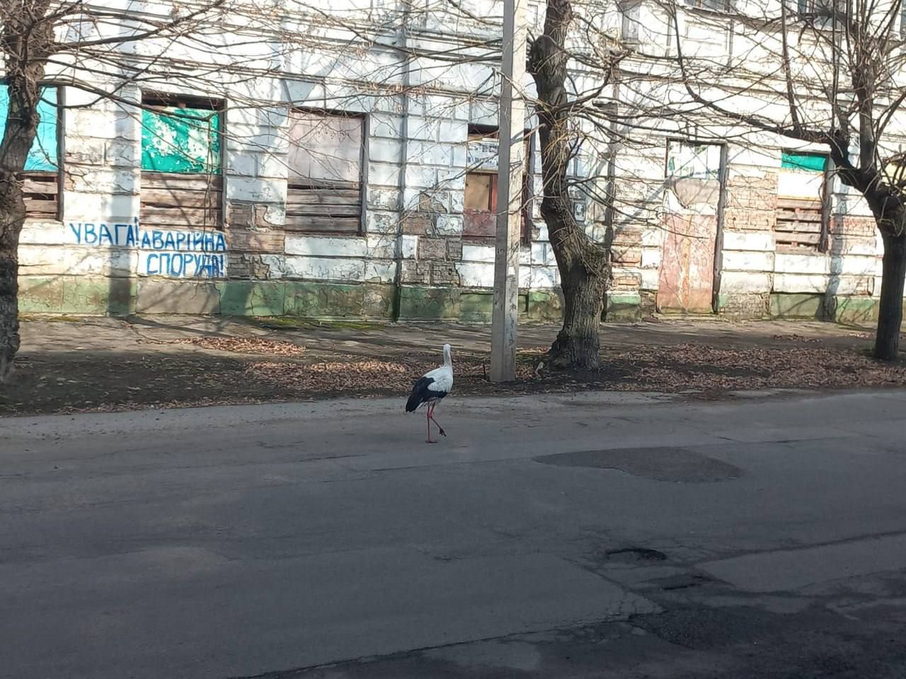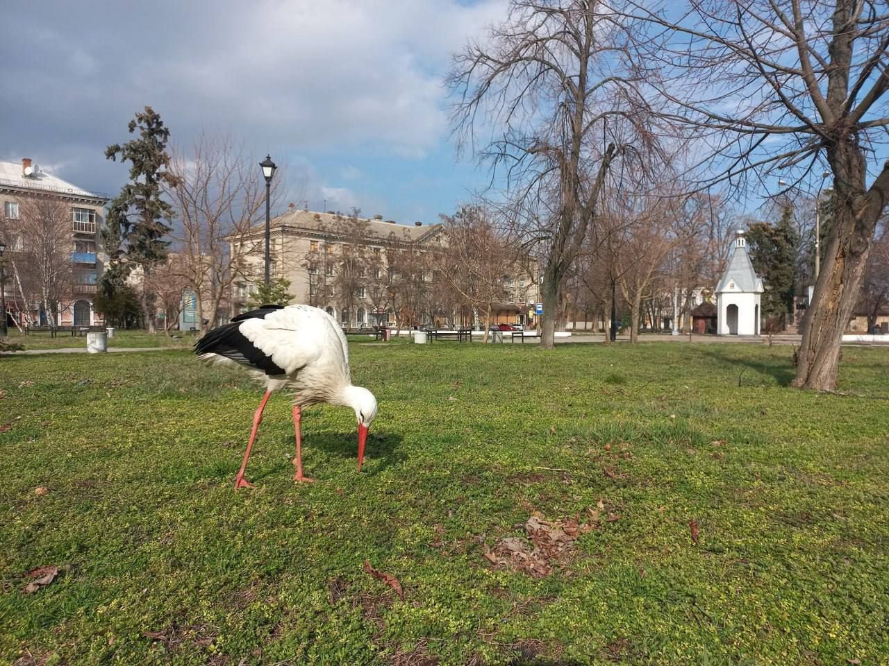 Хороший знак: посреди Никополя бродит ручной аист (ФОТО)