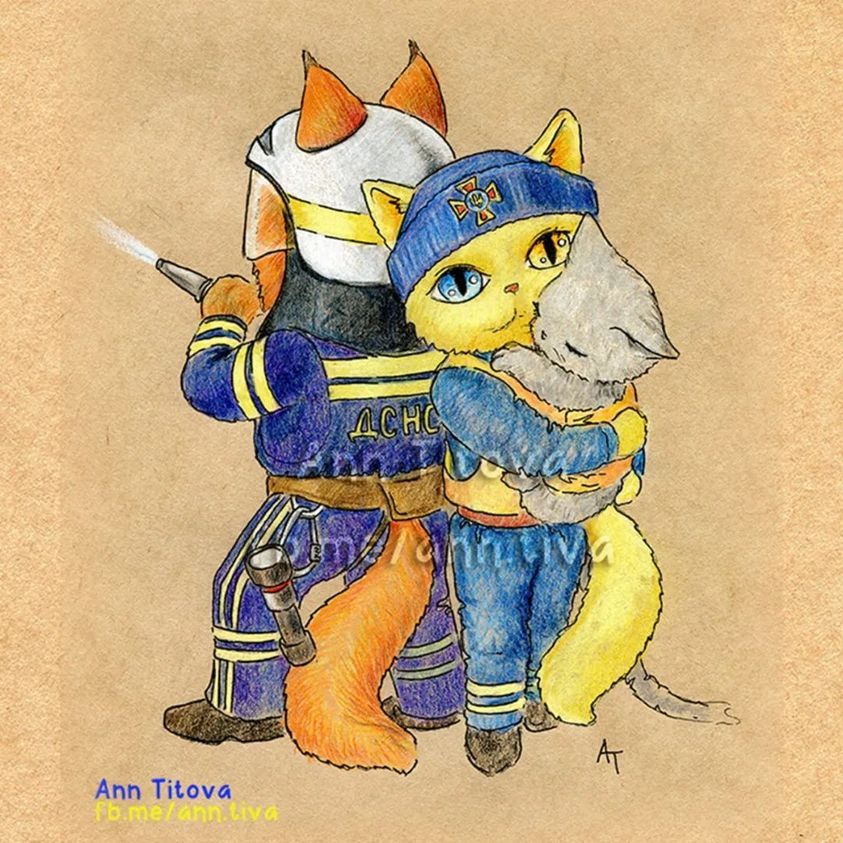 Ее работы - это рисунки, на которых изображены котики в образе бойцов Вооружённых сил Украины, волонтеров, медиков или спасателей.