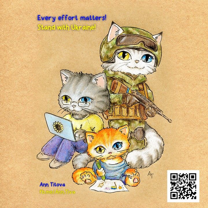 Художница из Днепра Анна Титова создала серию рисунков о котиках-украинцах.