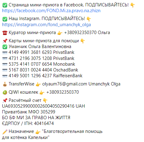Если у вас есть возможность помочь Капельке, то деньги можно перечислить сюда: