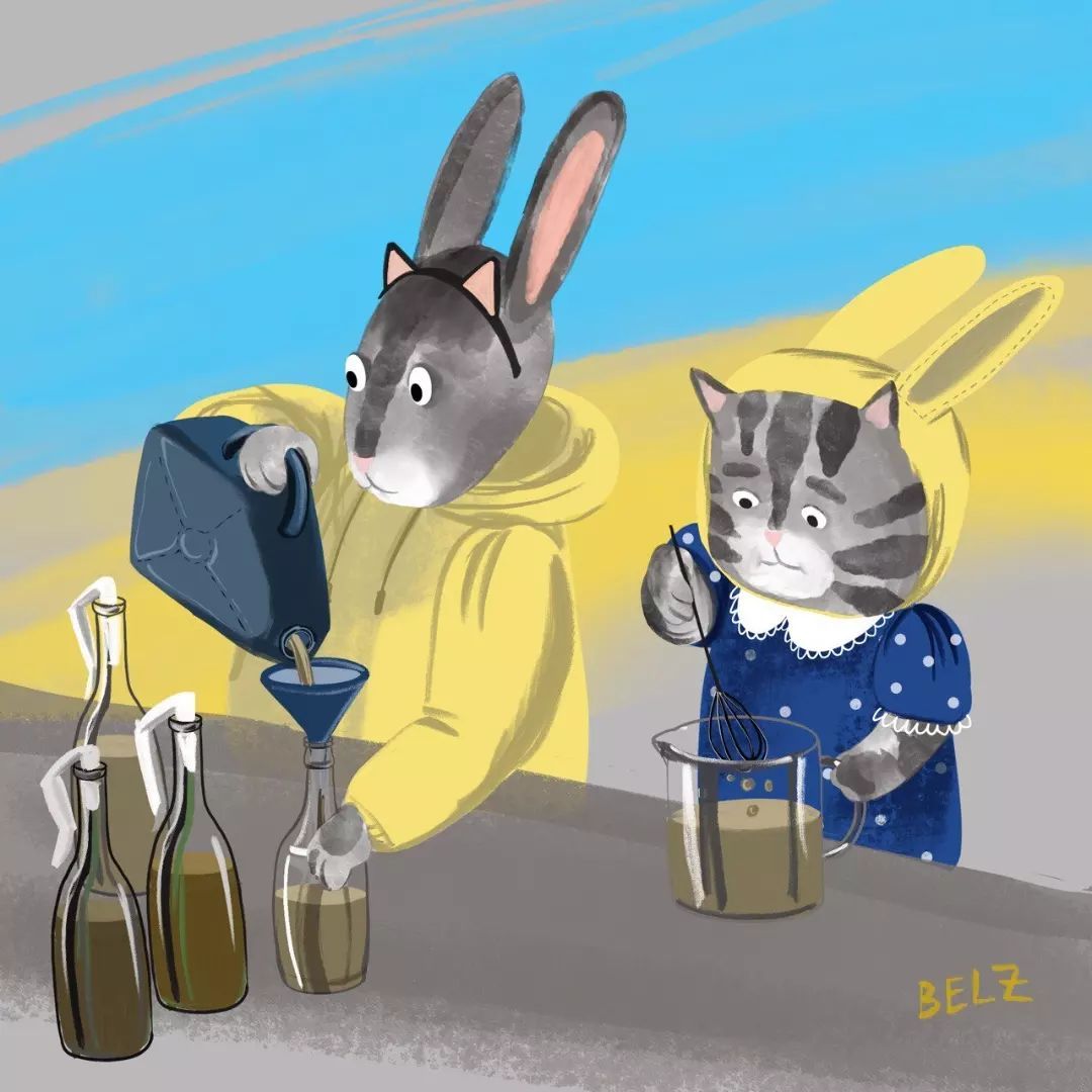 Художница из Днепра Леся Бельдий уже давно создает серию рисунков о Коте и Зае.