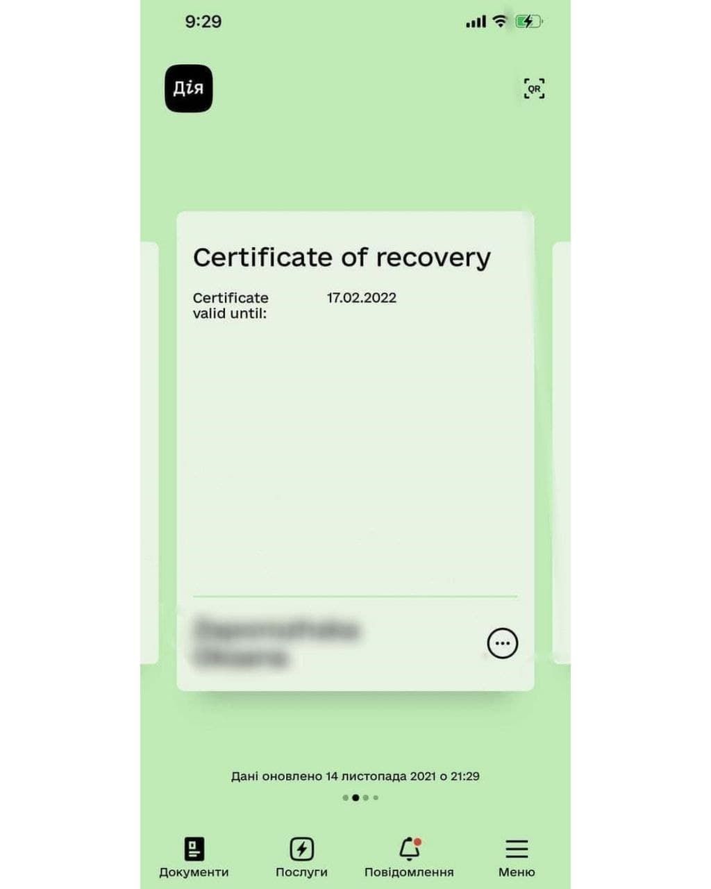 В мобильном приложении "Дія" теперь можно сгенерировать документ о выздоровлении.