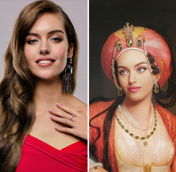 Александра Кучеренко, обладательница титула «Мисс Украина -2016», телеведущая, модель и жена Дмитрия Комарова превратилась на Картине Эжена Девериа превратилась в «Турецкую красавицу».