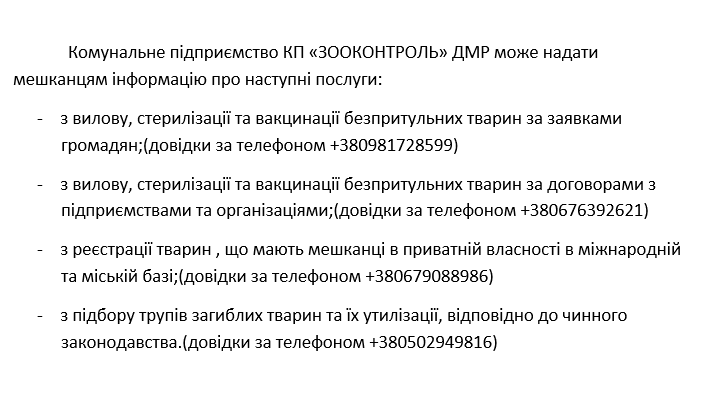 В Днепре этим занимается КП "Зооконтроль". На сайте Днепровского горсовета говорится о том, что коммунальное предприятие "Зооконтроль" может предоставить услугу по утилизации трупа домашнего питомца. Также они могут помочь убрать тело и бездомного животного, который валяется на улице.