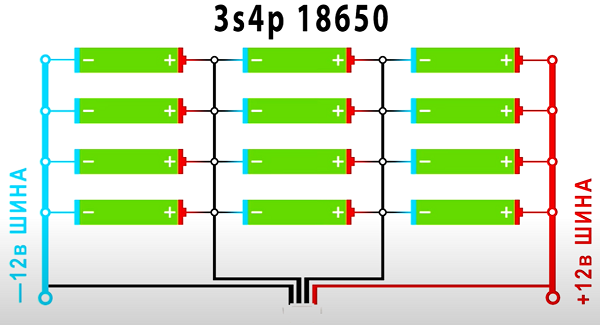 Первое, что нужно сделать –правильно установить батарейки. Их у нас должно быть четное число, например, 12. Для начала берем 3 штуки и ставим их так, чтобы «минус» был внизу, а «плюс» - вверху.
